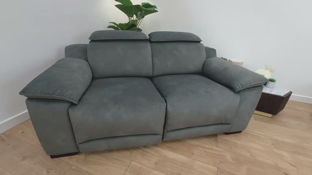 Sofology Benz Fabric 2 Seater Power Headrest/Recliner in Lifestyle Flecked Ivy Green