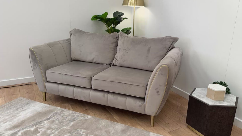 Sofology Gabrielle Fabric 2 Seater Gold Trim in Plush Pebble/Powder Ebony Mix