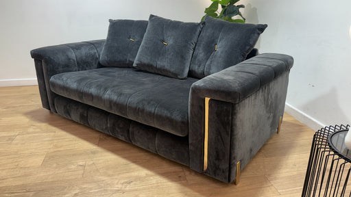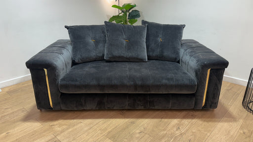 Original price £1,499Current price £1,049| /Sofology Oscar Fabric 2 Seater Gold Trim in Fine Textured Chenille Charcoal Mix