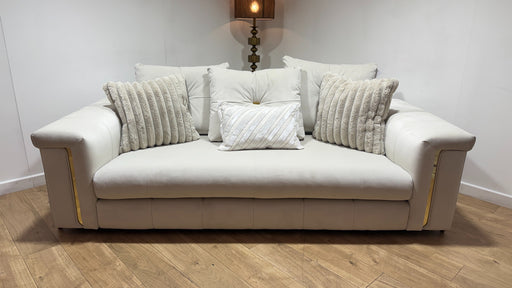 Original price £1,599Current price £1,099| /Sofology Oscar Fabric 3 Seater Gold Trim in Super Matt Velvet Ecru Mix