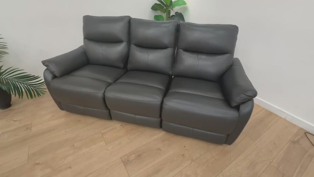 Sofology Albion Leather 3 Seater Manual Recliner in Trusty Sheen Charcoal