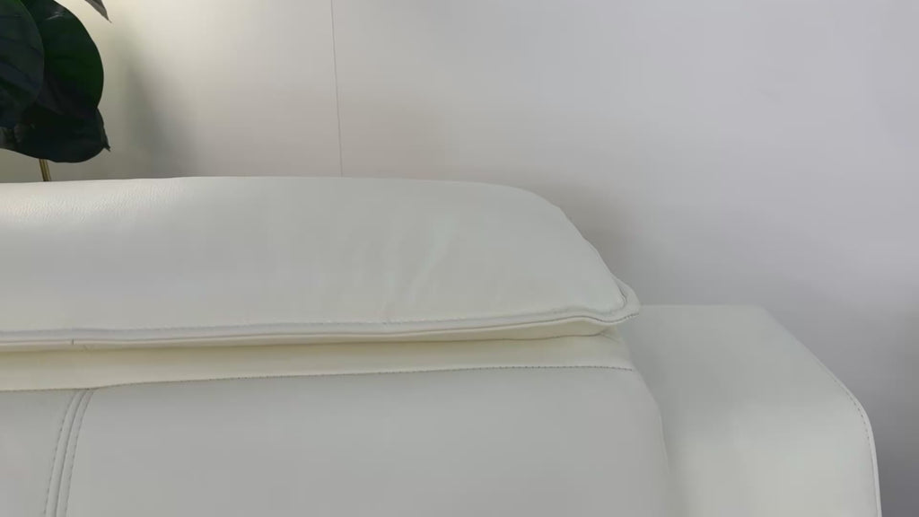 Sofology Benz Leather 3 Seater Power Recliner/Headrest in Trusty Sheen White