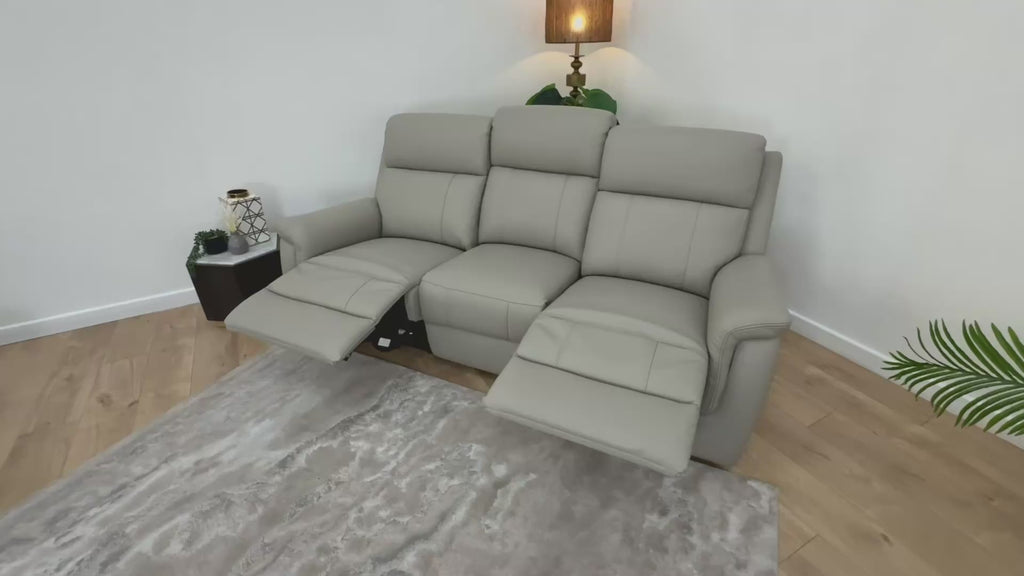 Sofology Bradie Leather 3 Seater Power Recliner in Trusty Embossed Light Grey