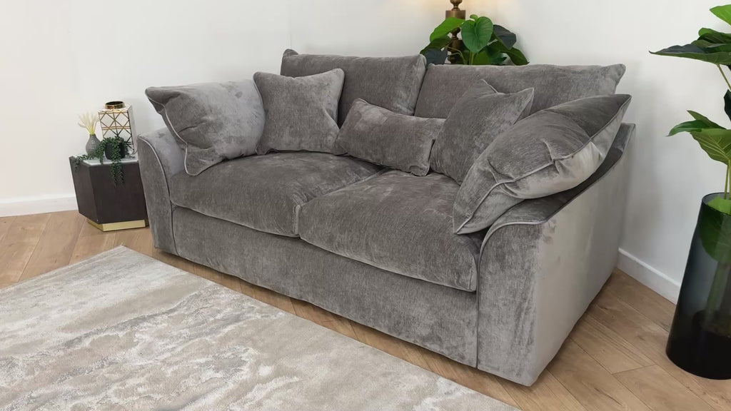 Sofology Georgio Fabric 3 Seater Feather Flex Seats in Luxury Deep Pile Chenille Grey Mix