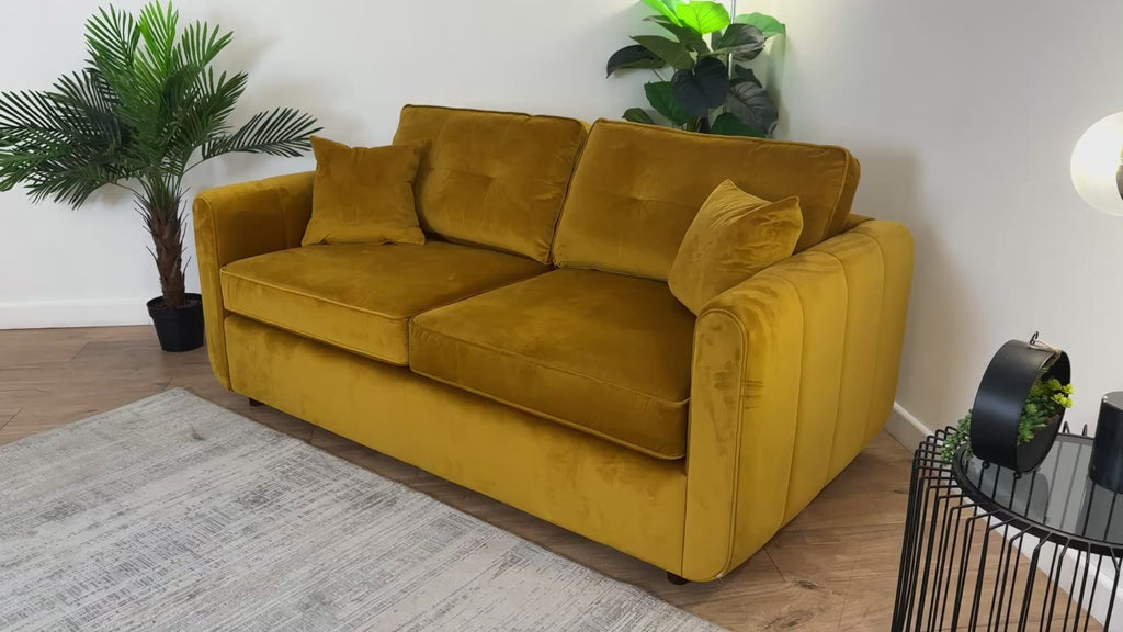 Sofology Islington Fabric 3 Seater Hypnos Deluxe Sofa Bed in Sleek Mustard