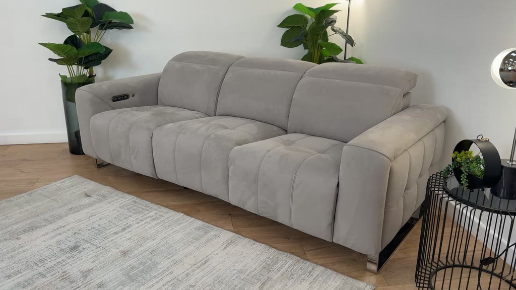 Sofology Marvella Fabric 3 Power Recliner/Headrest Heated Seat in Lifestyle Nubuck Feel Light Grey