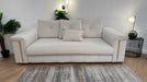 Sofology The Oscar Fabric 3 Seater Gold Trim in Super Matt Velvet Ecru