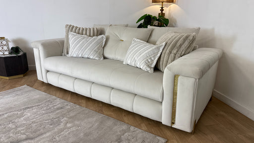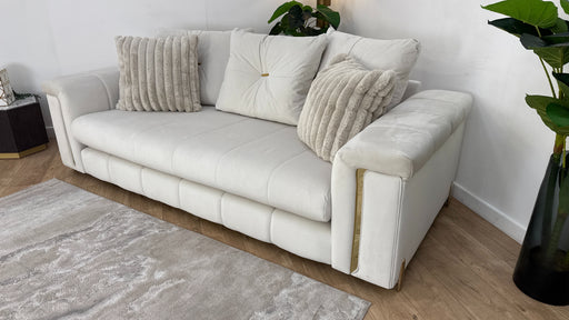 Original price £1,599Current price £999| /Sofology The Oscar Fabric 3 Seater Gold Trim in Super Matt Velvet Ecru Mix