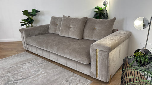 Original price £1,399Current price £999| /Sofology Gabrielle Fabric 4 Seater Chrome Trim in Plush Pebble/Alexa Truffle