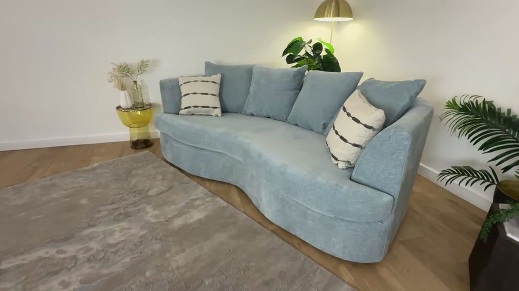 Sofology Chloe Fabric 4 Seater Pillow Back in Linen Look Chenille Sky