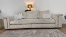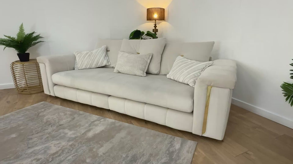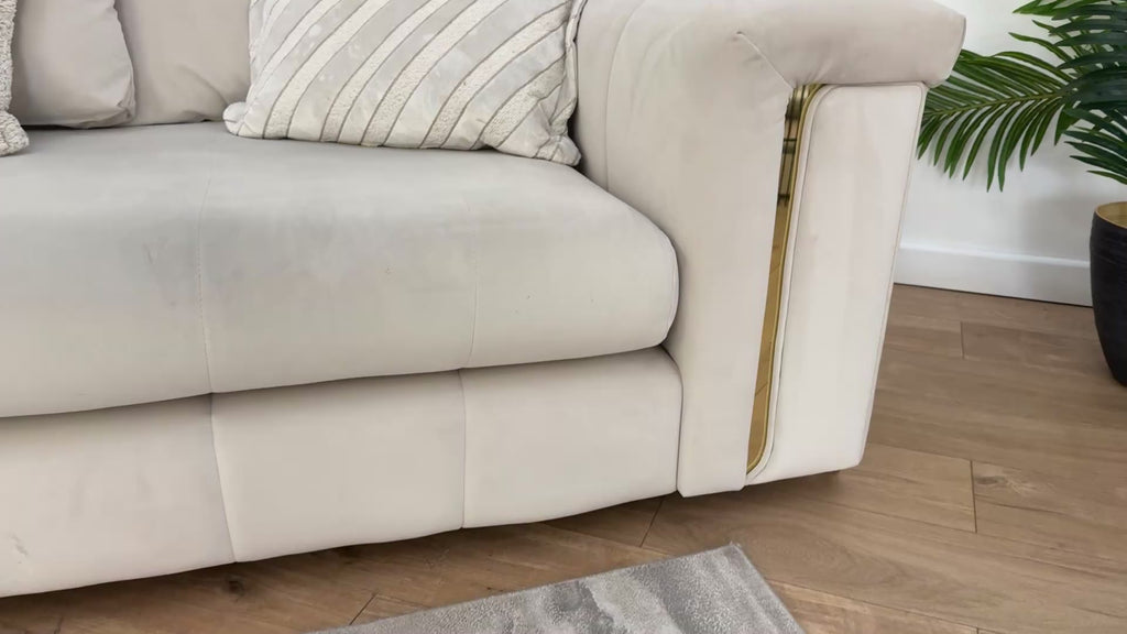 Sofology The Oscar Fabric 4 Seater Split Gold Trim in Super Matt Velvet Ecru Mix
