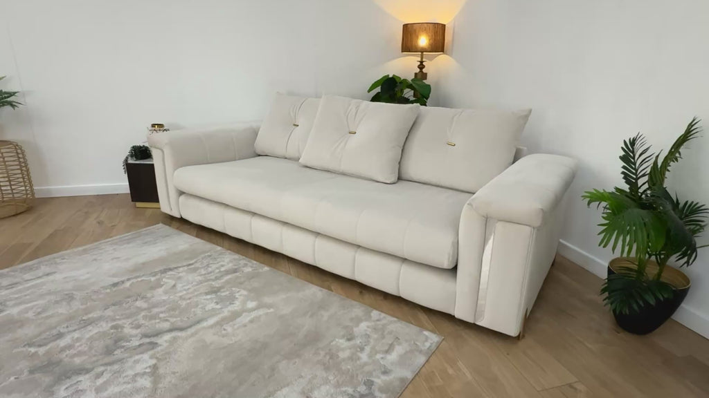Sofology The Oscar Fabric 4 Seater with Gold Trim in Super Matt Velvet Ecru