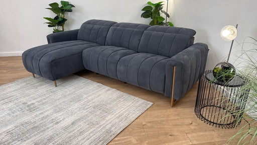 Original price £2,399Current price £1,599| /Sofology The Paramount Leather 4 Seater Chaise Power Recliner/Headrest Speakers in Trusty Embossed Charcoal