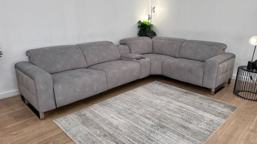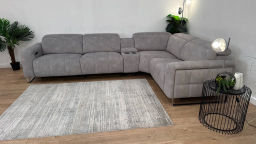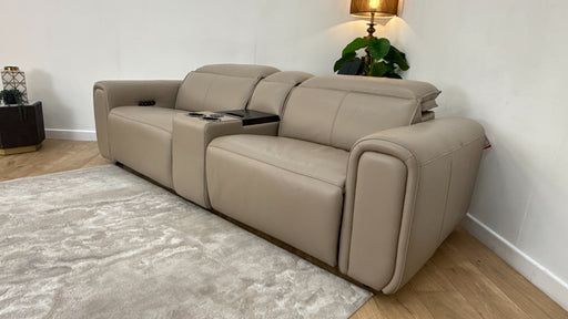 Original price £4,699Current price £3,299| /Sofology Premiere Leather 3 Corner Smart Console 3 Power Recliner/Headrest in Trusty Embossed Light Grey