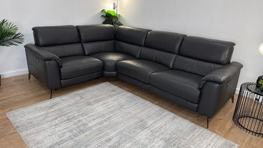 Original price £3,499Current price £2,449| /Sofology Illinois Leather 1 Corner 2 Power Recliner/Headrest in Trusty Soft Sheen Charcoal