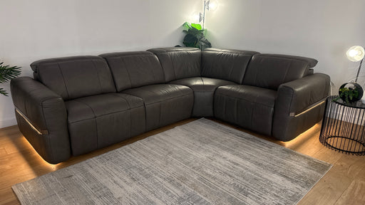 Original price £3,899Current price £2,599| /Sofology Lumiere Leather 3 Corner 1.5 Power Recliner/Headrest Heated Seat Gunmetal Trim in Trusty Embossed Grey