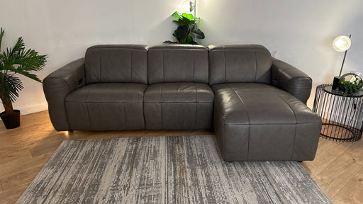 Original price £2,499Current price £1,749| /Sofology The Viento Leather 3 Seater Chaise Power Recliner/Headrest in Trusty Embossed Grey