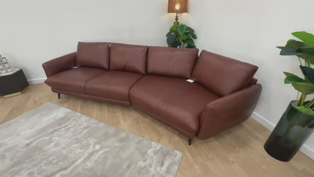 Sofology Adler Leather 4 Seater Asymmetric in Relaxed Soft Brown