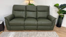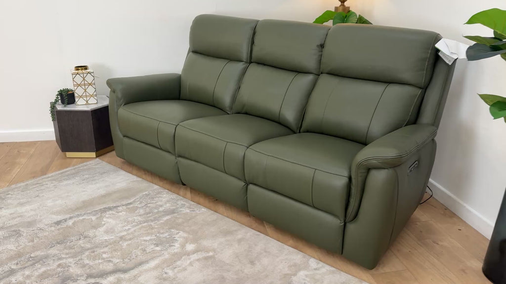 Sofology Bradie Leather 3 Seater Power Recliner/Headrest in Trusty Embossed Dark Olive