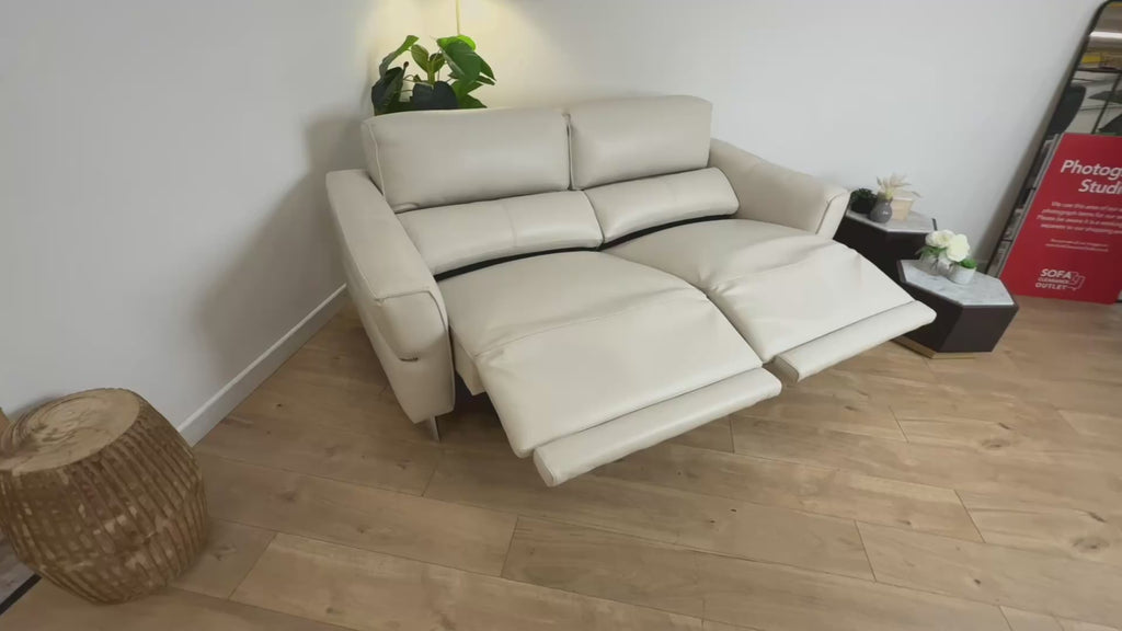 Sofology Dakota Leather 3 Seater Power Recliner/Headrest in Trusty Soft Sheen Mist