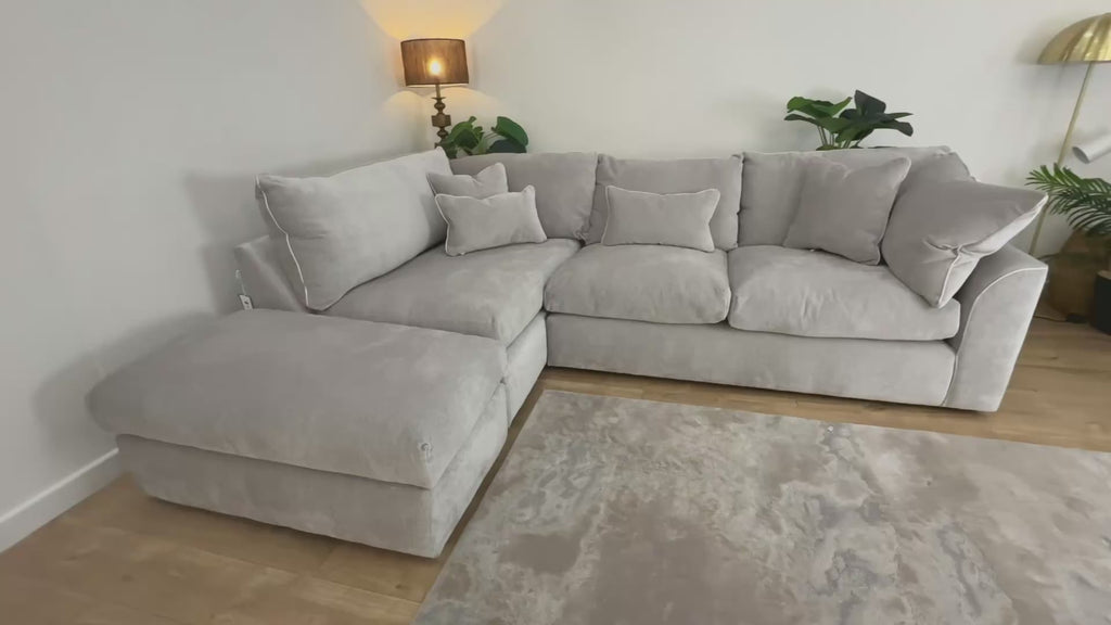Sofology Georgio Fabric Terminal 1 Corner 3 Feather Flex Seats in Luxury Deep Pile Chenille Silver Mix