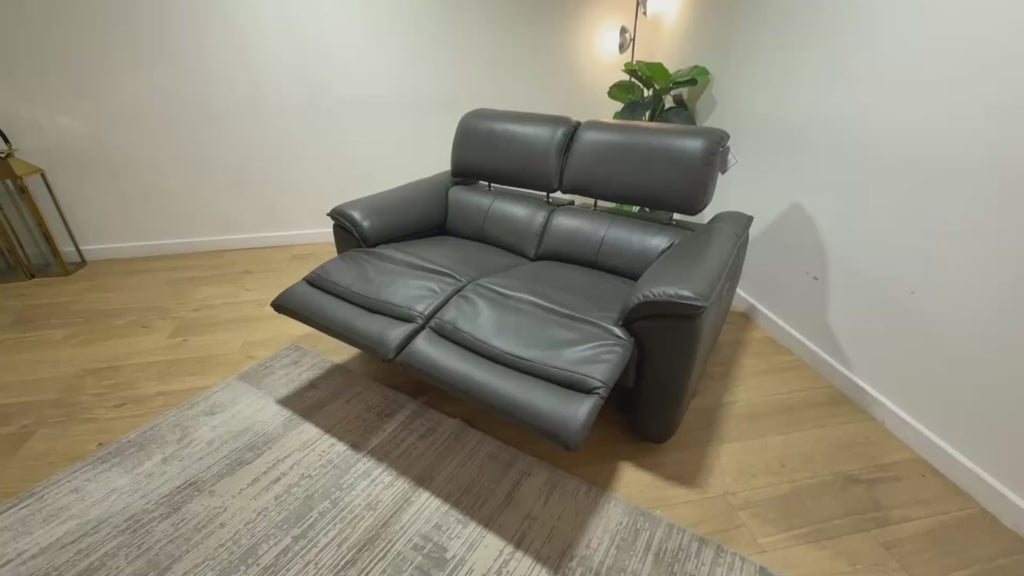 Sofology Hugo Leather 2 Seater Power Recliner/Headrest in Trusty Embossed Charcoal
