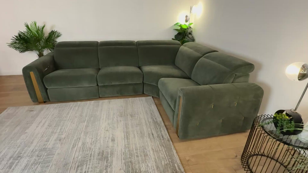 Sofology Kingsbridge Fabric 3 Corner 1.5 Power Recliner/Headrest Heated Seats in Relaxed Chenille Pine