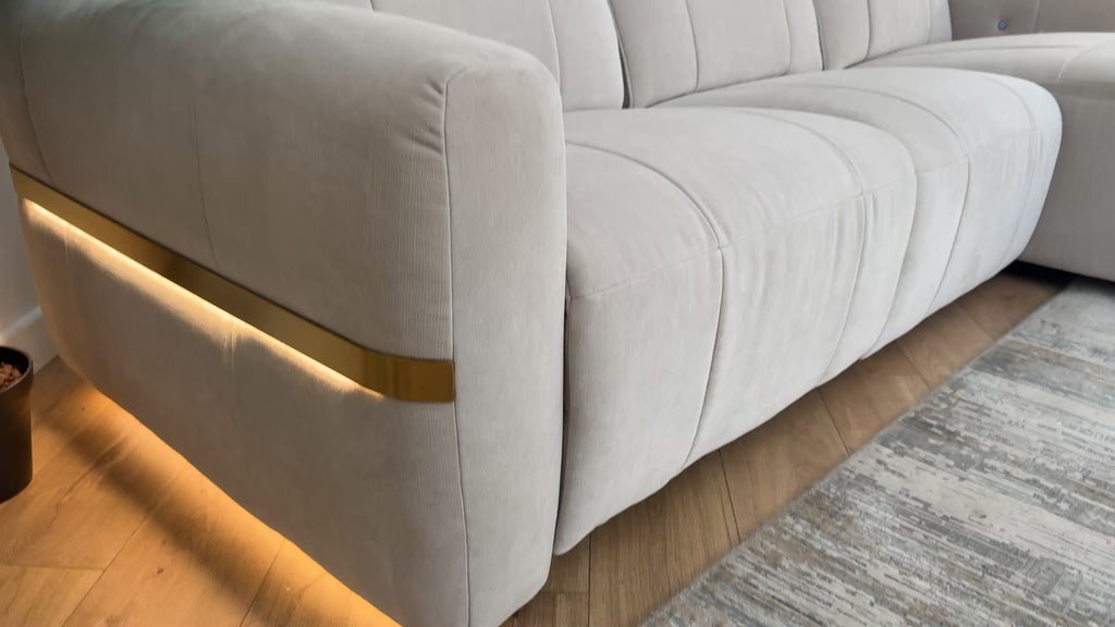 Sofology Lumiere Fabric Chaise 4 Seater Power Recliner/Headrest in Relaxed Chenille Cotton