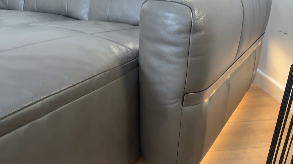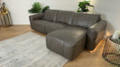 Sofology Lumiere Leather 4 Seater Chaise Power Recliner/Headrest Heated Seat in Trusty Embossed Grey