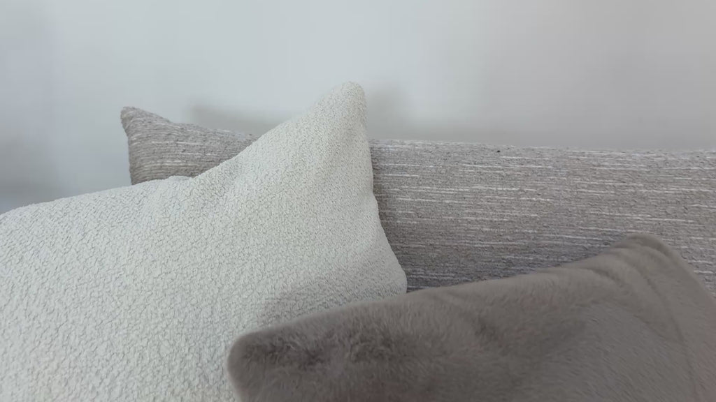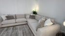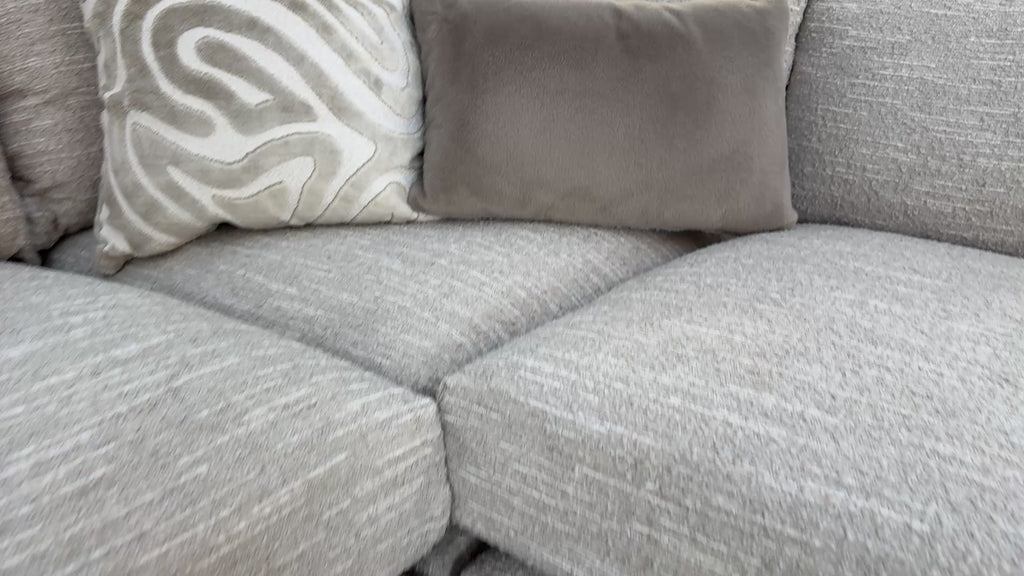 Sofology Marble Arch Fabric 3 Corner 1 Light Wood Trim in Chunky Flecked Boucle Stone/Ecru Mix
