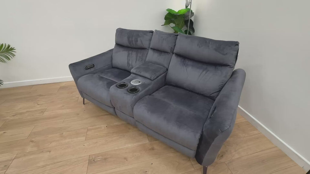 Sofology Renato Fabric 2 Seater Console Power Recliner Speakers in Heritage Velvet Granite