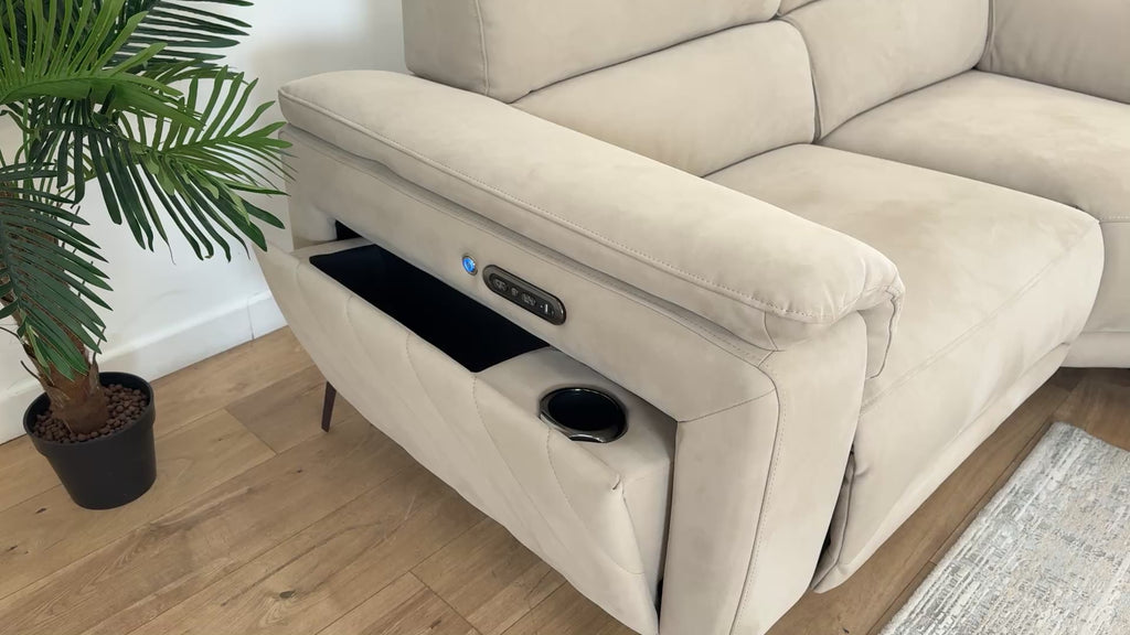Sofology The Fratelli Fabric 1.5 Corner 3 Power Recliner/Headrest in Lifestyle Nubuck Feel Stone