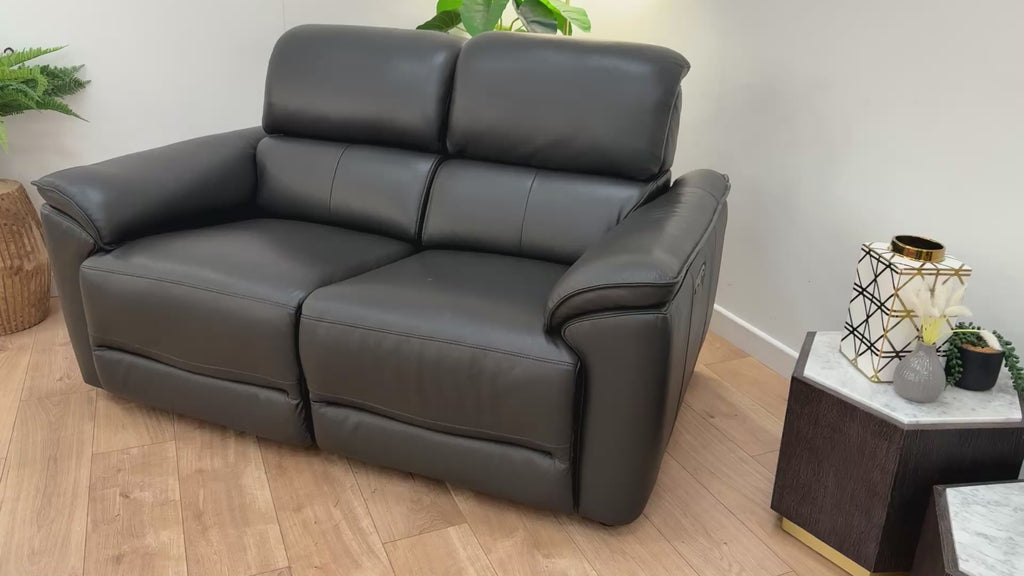 Sofology The Hugo 2 Seater Recliner Sofa in Trusty Embossed Leather Charcoal