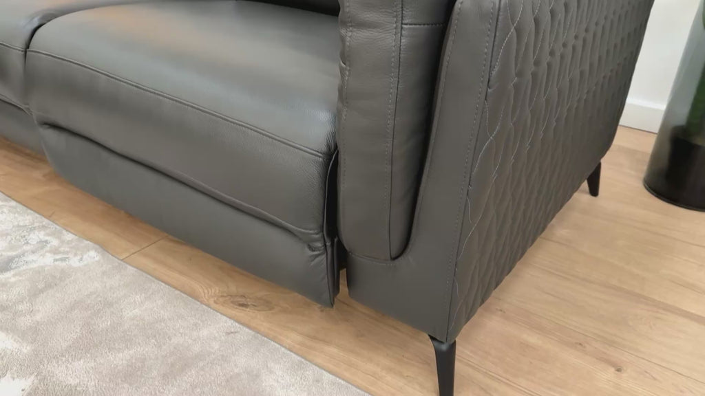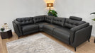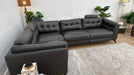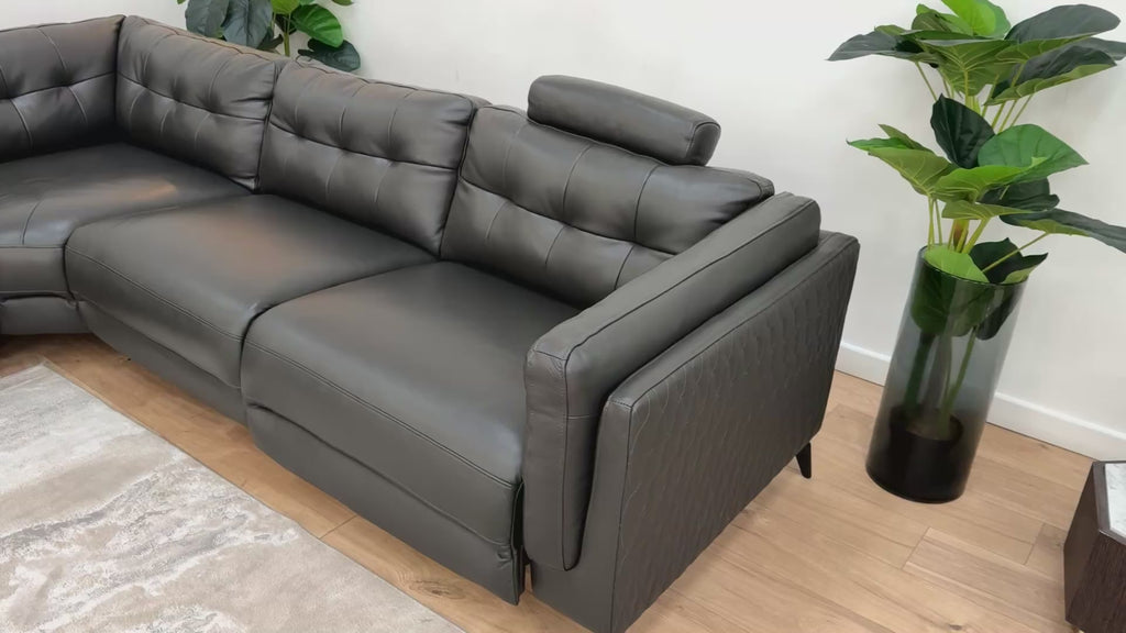 Sofology The Muse 1.5 Corner 3 Fabric Recliner Sofa in Trusty Embossed Leather Charcoal