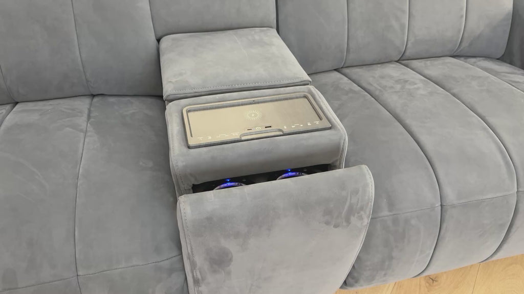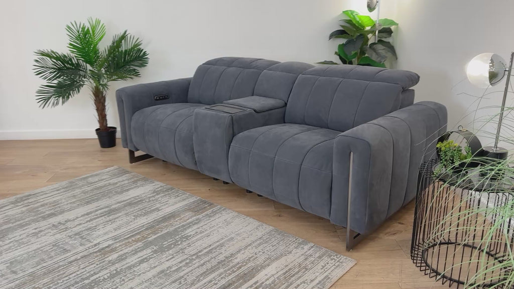 Sofology The Paramount Fabric 2.5 Seater Console Power Recliner/Headrests Speakers in Lifestyle Nubuck Feel Charcoal