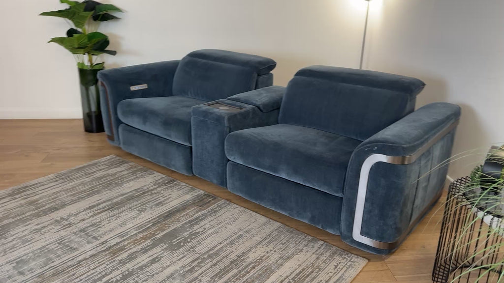 Sofology The Plaza 2.5 Seater Fabric Recliner Sofa Console in Relaxed Chenille Denim