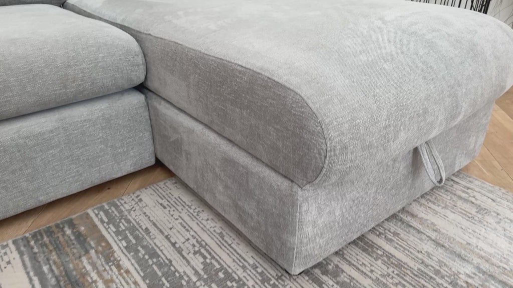 Sofology The Portobello Fabric 3 Seater Chaise with Storage & Sprung Seats in Linen Look Chenille Grey