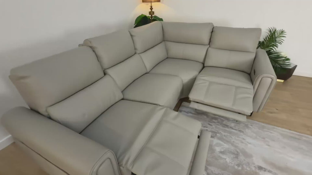 Sofology The Ravello Leather 2 Corner 1 Power Recliner in Trusty Embossed Light Grey
