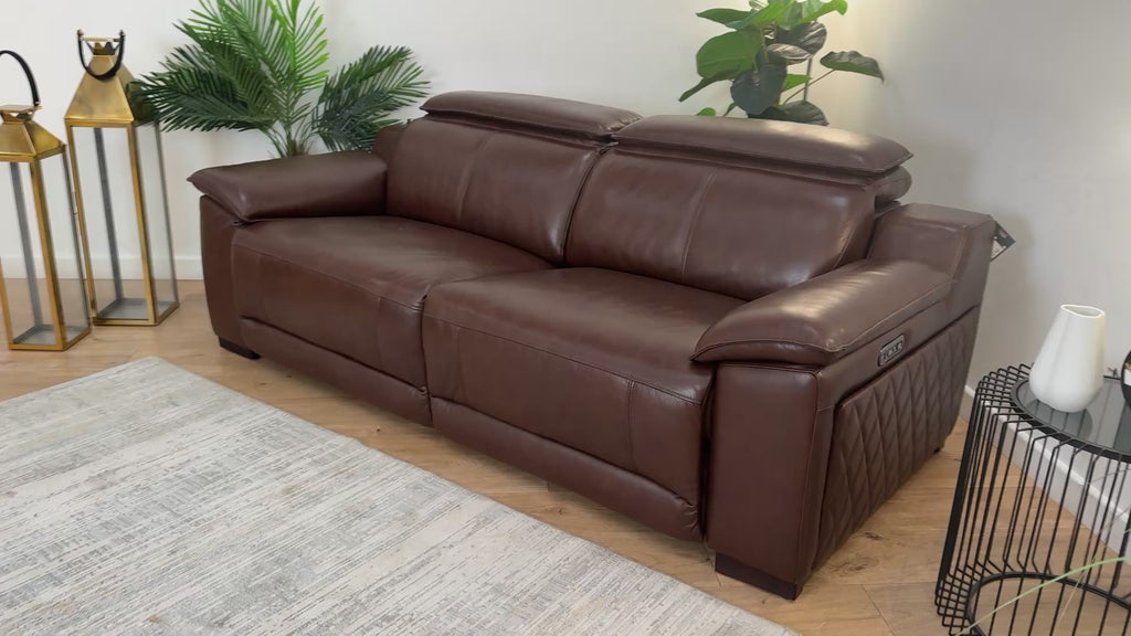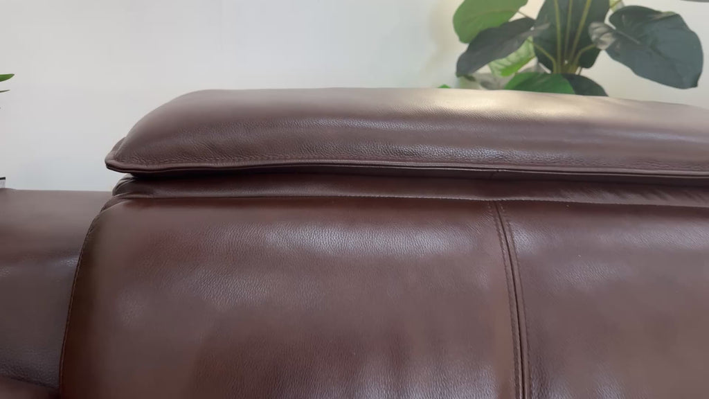 Sofology Benz Leather 3 Seater Power Recliner/Headrest in Trusty Sheen Chocolate