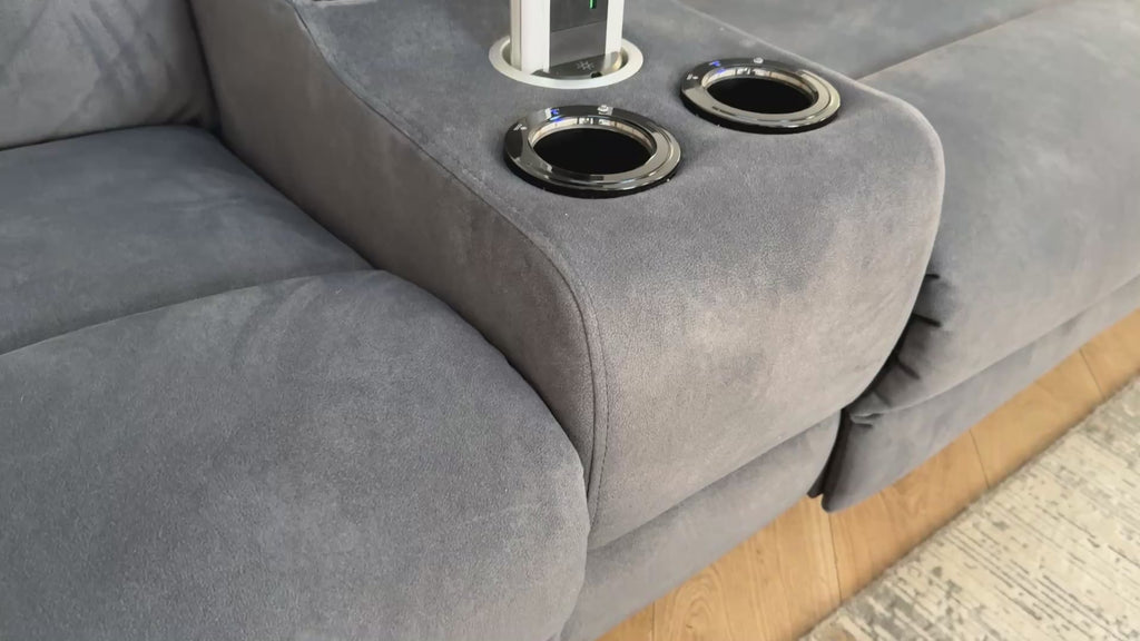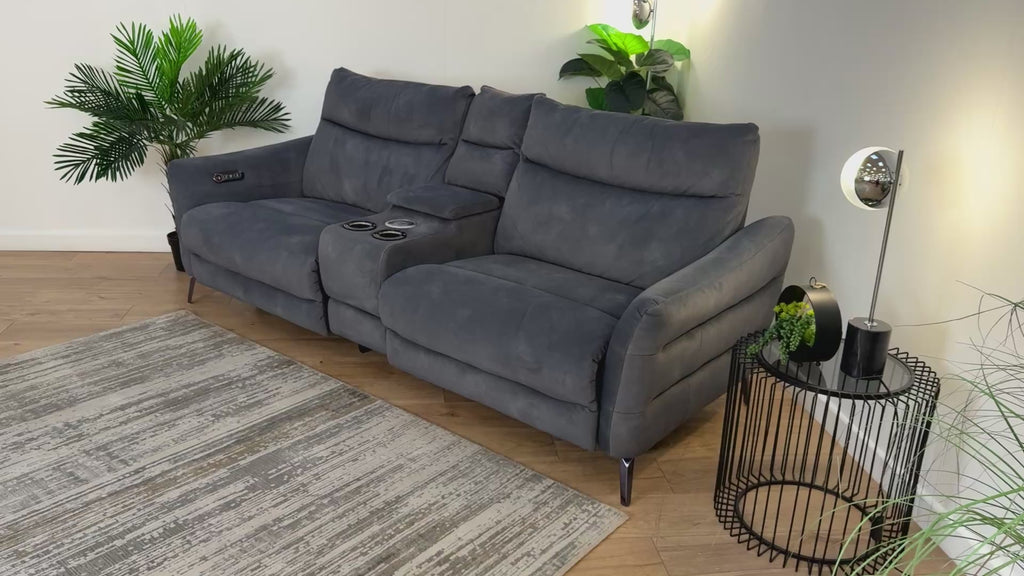 Sofology Renato 2.5 Fabric Seater Console Power Recliner in Lifestyle Flecked Charcoal