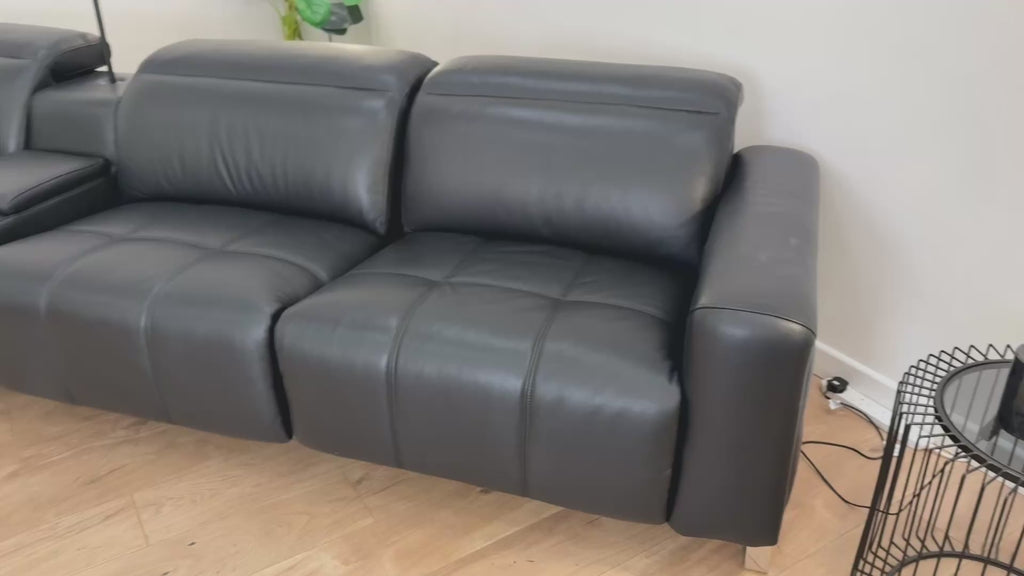Sofology The Marvella 4 Seat Console Leather Recliner in Trusty Sheen Jet Black