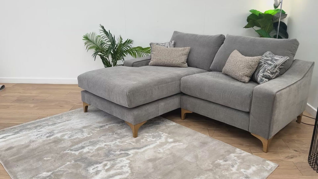 Sofology The Wildwood 3 Seater Fabric Chaise Sofa in Vintage Chenille Grey Contrast Piping Mix