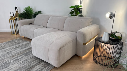 Original price £2,599Current price £1,799| /Sofology Lumiere Fabric Chaise 4 Seater Power Recliner/Headrest in Relaxed Chenille Cotton