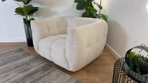 Original price £799Current price £399| /Sofology The Lunar Fabric Swivel Chair in Woven Boucle Linen