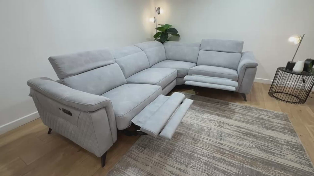 Sofology Ezra Fabric 3 Corner 1.5 Power Recliner/Headrest Heated Seat in Lifestyle Flecked Silver