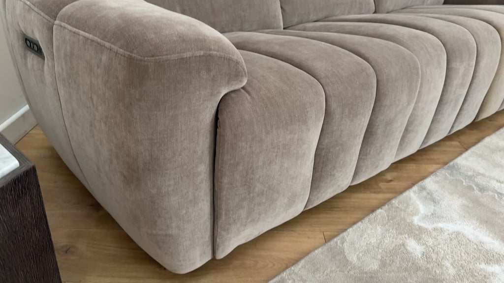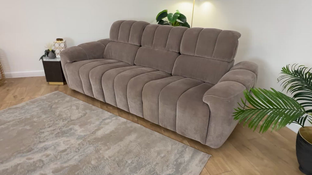 Sofology Nobu Fabric 3 Seater Power Recliner/Headrest in Relaxed Chenille Nutmeg
