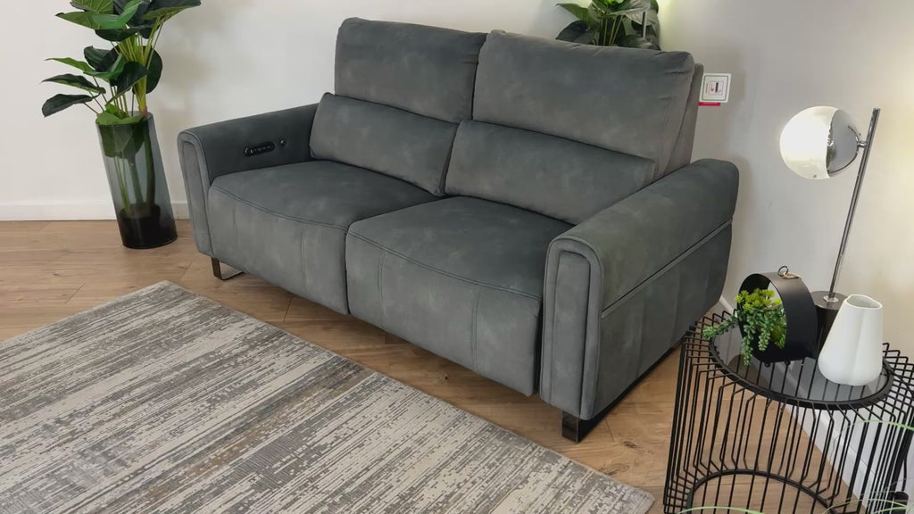 Sofology The Ravello Fabric 2.5 Seater Power Recliner/Headrest Heated Seat Lumbar in Lifestyle Flecked Mineral Green