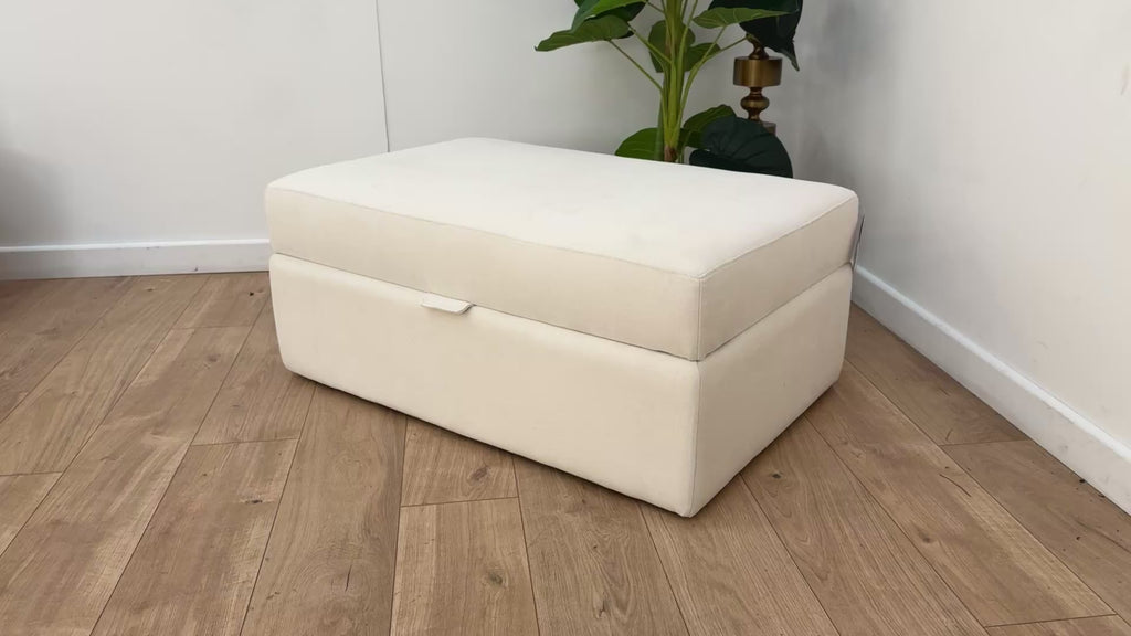 Sofology Cove Fabric Large Storage Footstool in Soft Chenille Ivory
