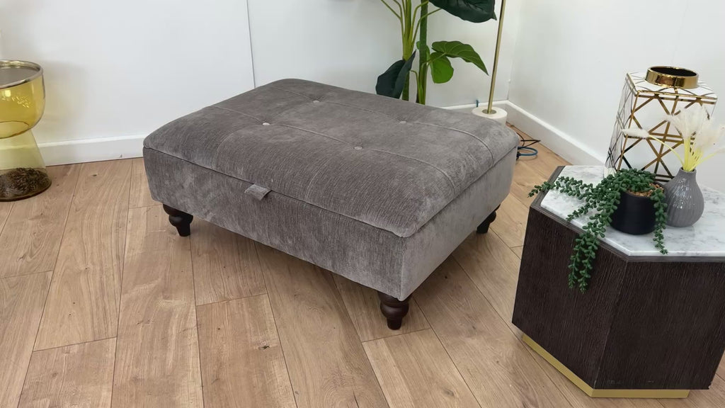 Sofology Highgrove Fabric Storage Footstool in Luxury Deep Pile Chenille Grey