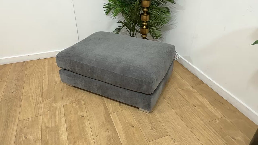 Sofology Majestica Fabric Combi Footstool in Luxe Chenille Pewter